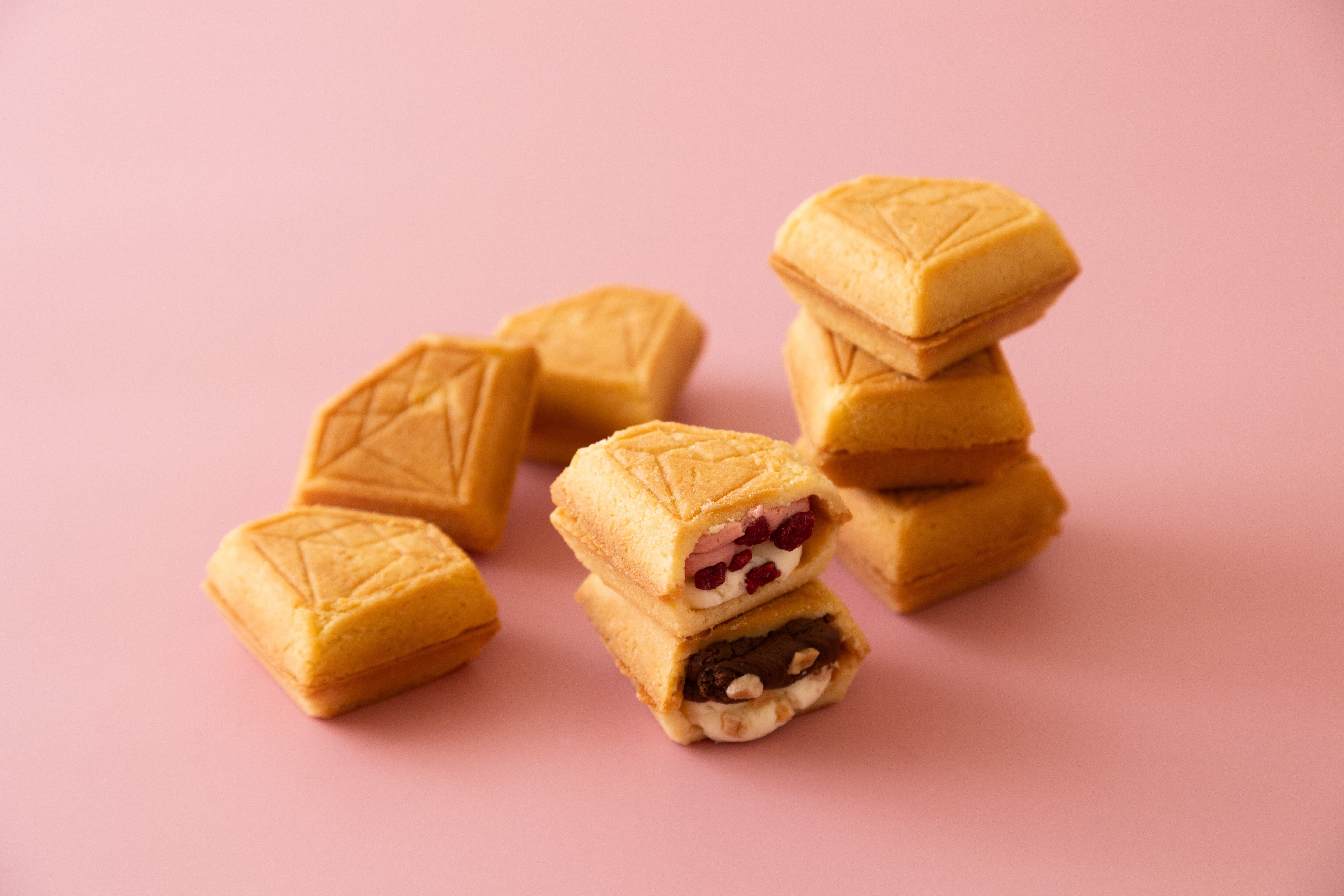 ダイヤモンド型のクッキー生地の中に、季節ごとのさまざまな味わいのクリームをたっぷりと詰め込みました。サクサクの食感と滑らかなクリームが織りなす絶妙なハーモニーを、どうぞご堪能ください。