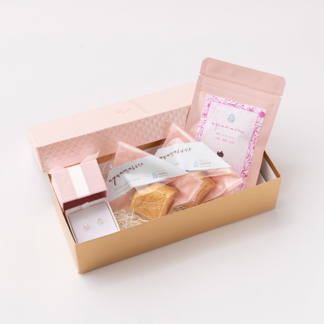 3月誕生石1粒アクアマリンピアス&ダイヤモンド型バターサンド&紅茶セット【手土産・誕生日・お祝いに最適】