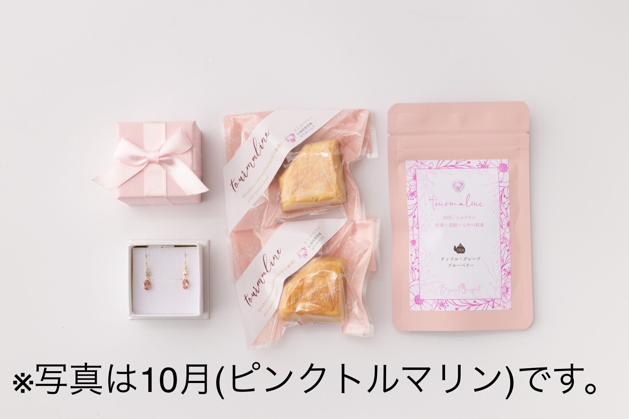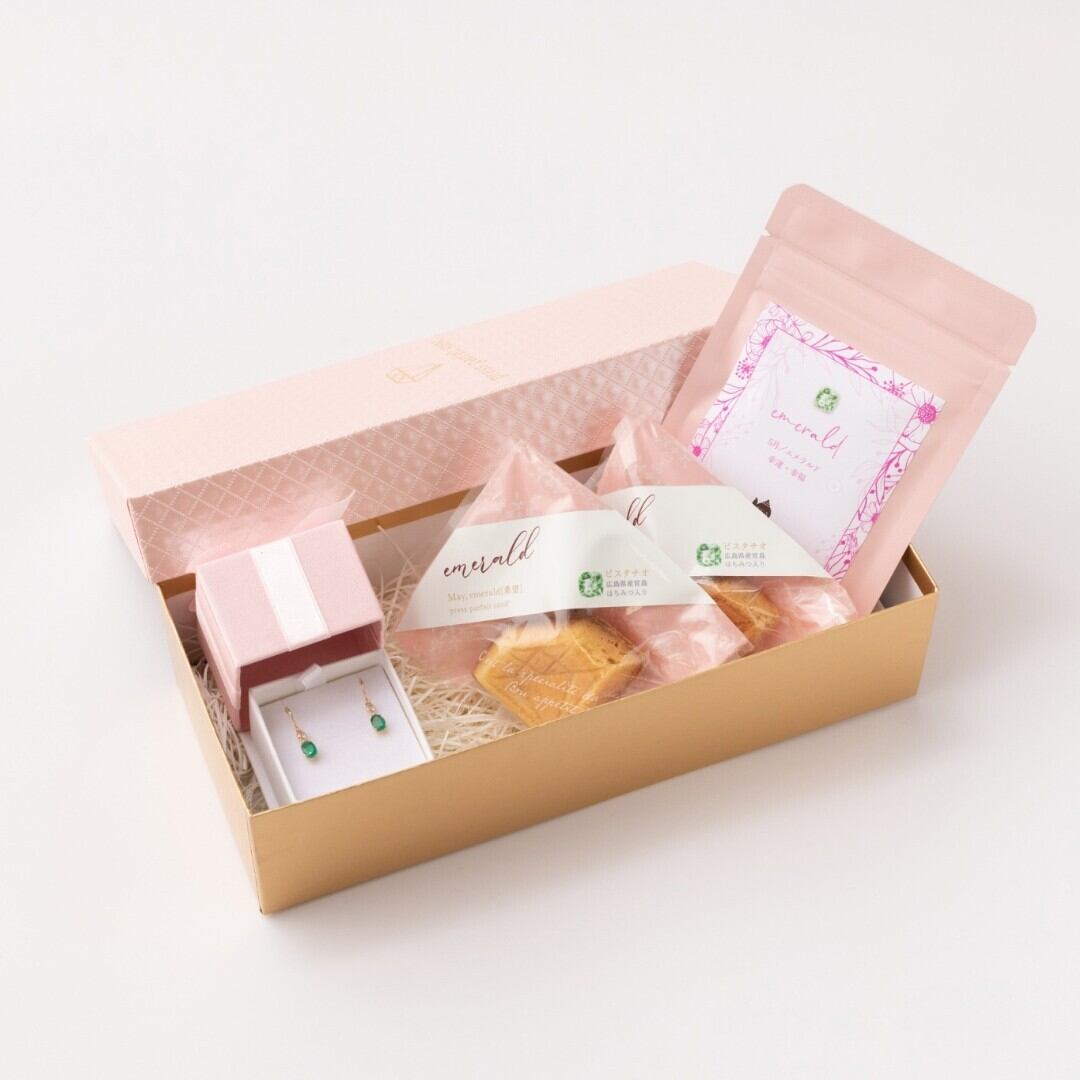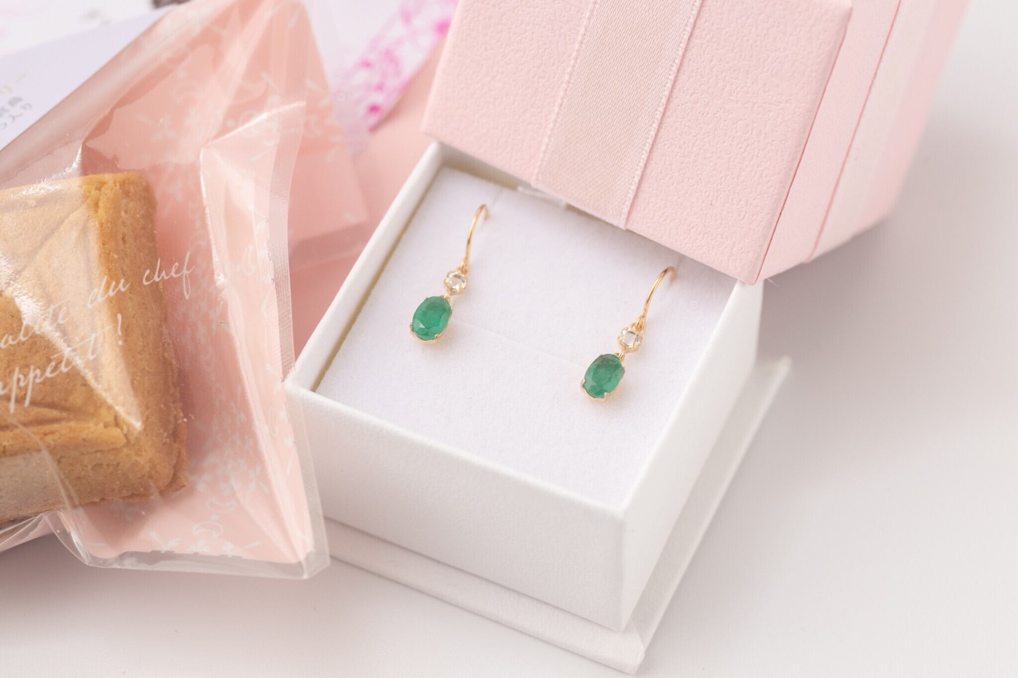 5月誕生石揺れるエメラルドピアス&ダイヤモンド型バターサンド&紅茶セット【手土産・誕生日・お祝いに最適】
