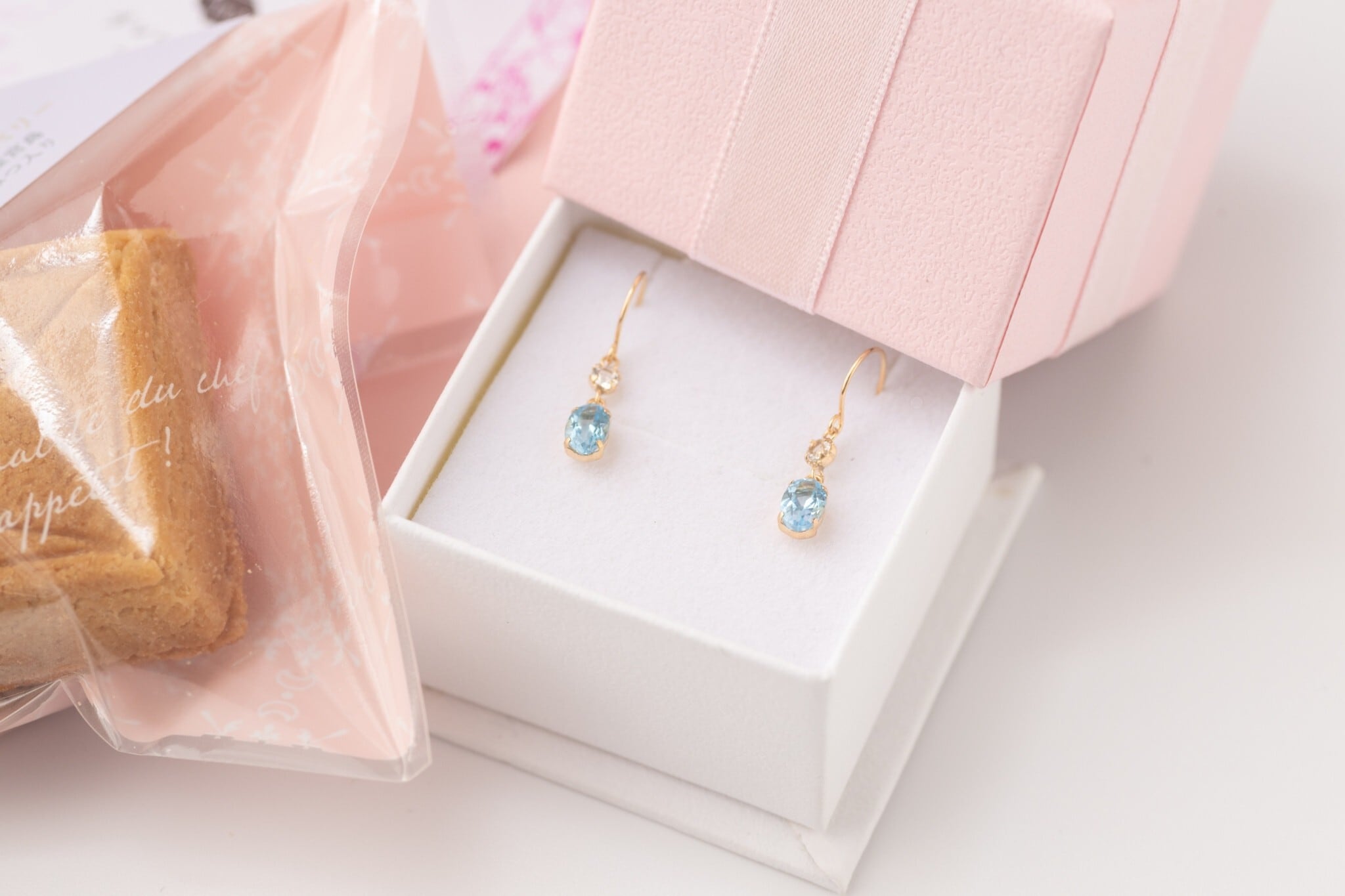 11月誕生石揺れるトパーズピアス&ダイヤモンド型バターサンド&紅茶セット【手土産・誕生日・お祝いに最適】
