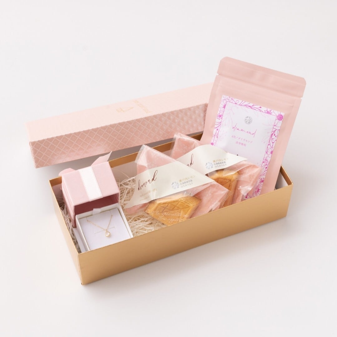 4月誕生石ドロップ型 キュービックネックレス&ダイヤモンド型バターサンド&紅茶セット【手土産・誕生日・お祝いに最適】