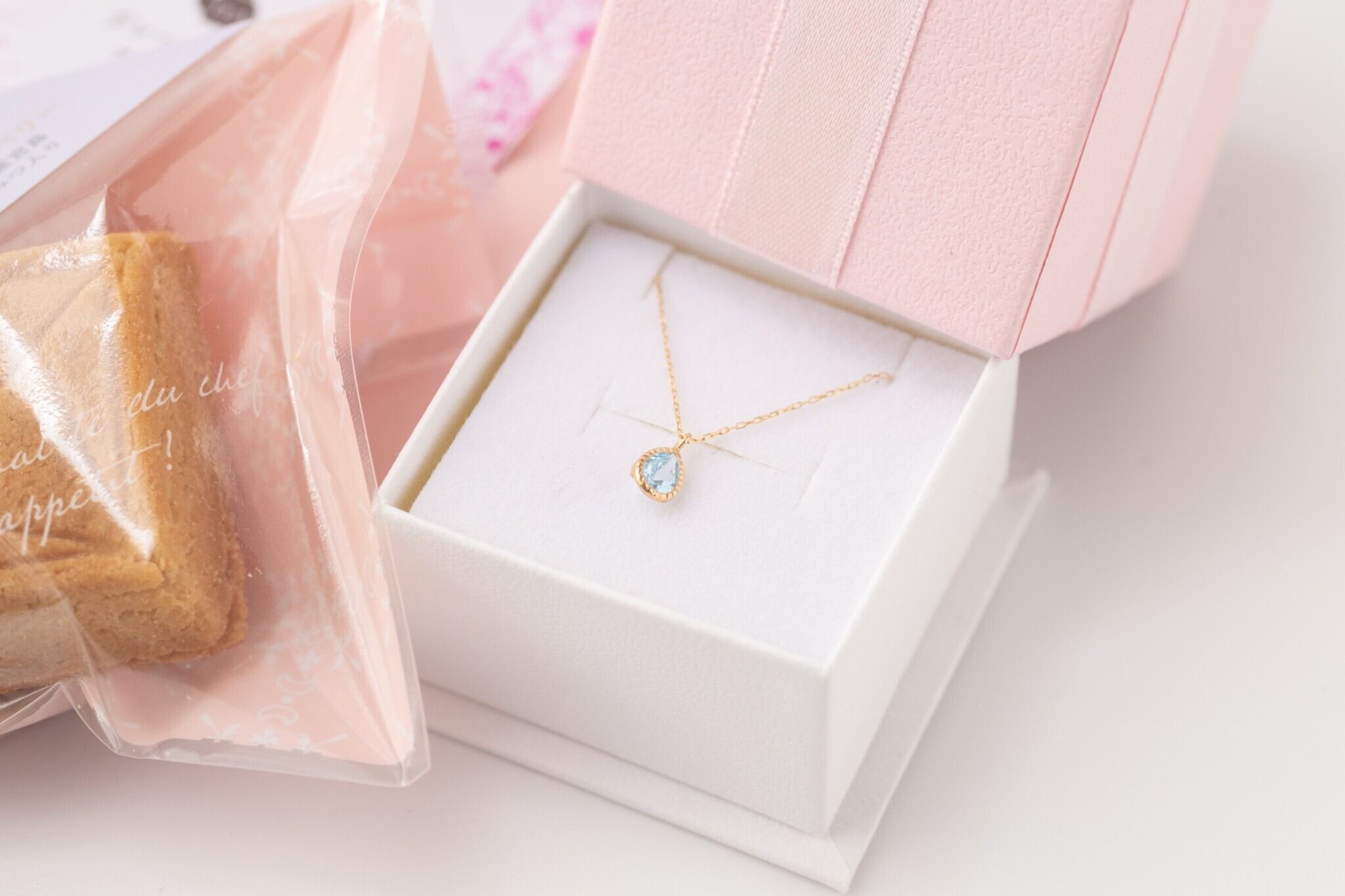 11月誕生石ドロップ型 トパーズネックレス&ダイヤモンド型バターサンド&紅茶セット【手土産・誕生日・お祝いに最適】